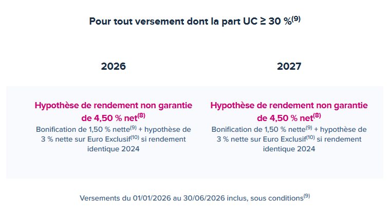 - Fonds en euros boosté en jusqu'en 2027 pour les versements effectués en 2026